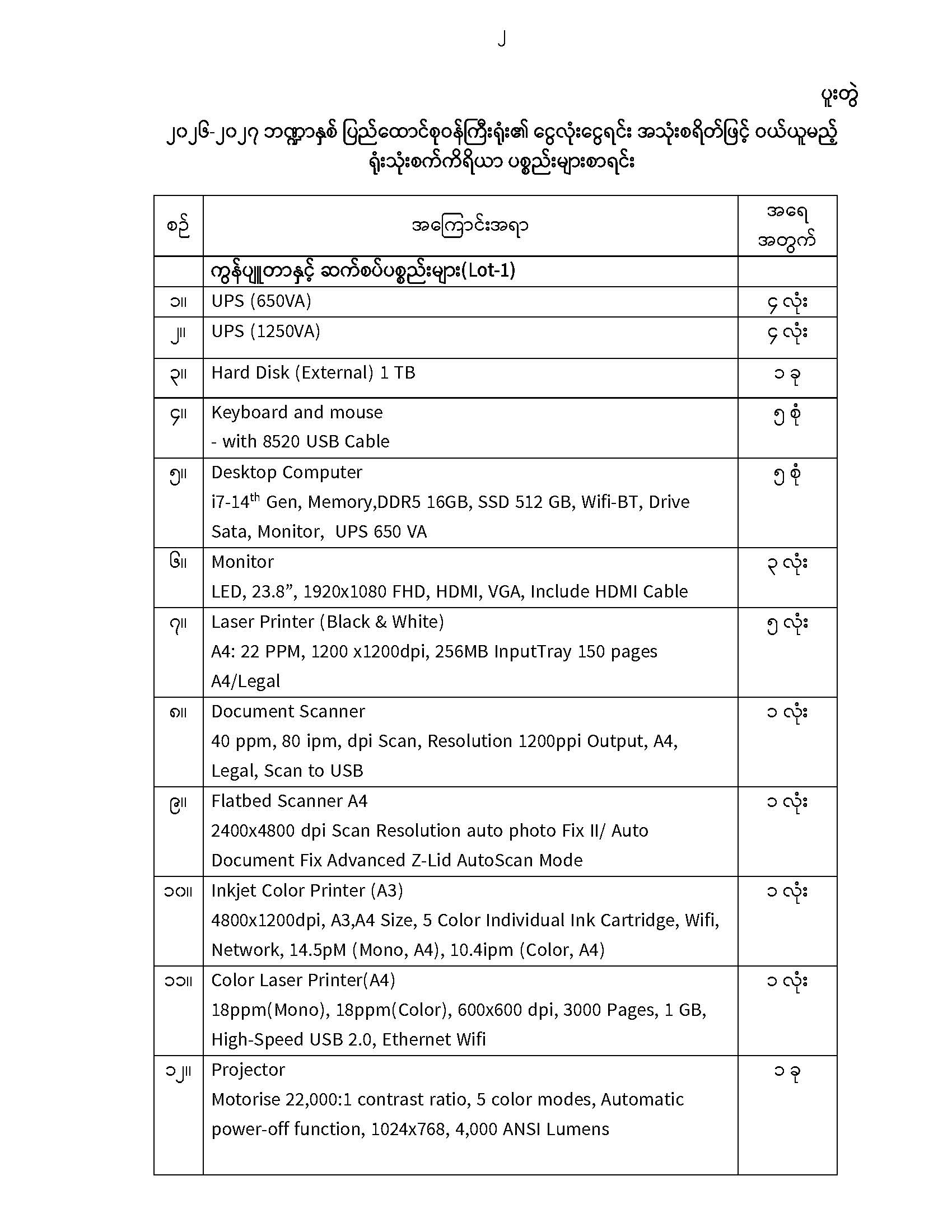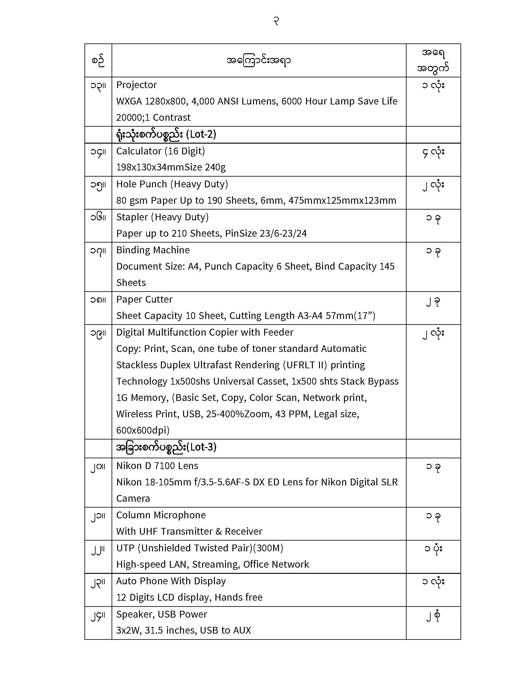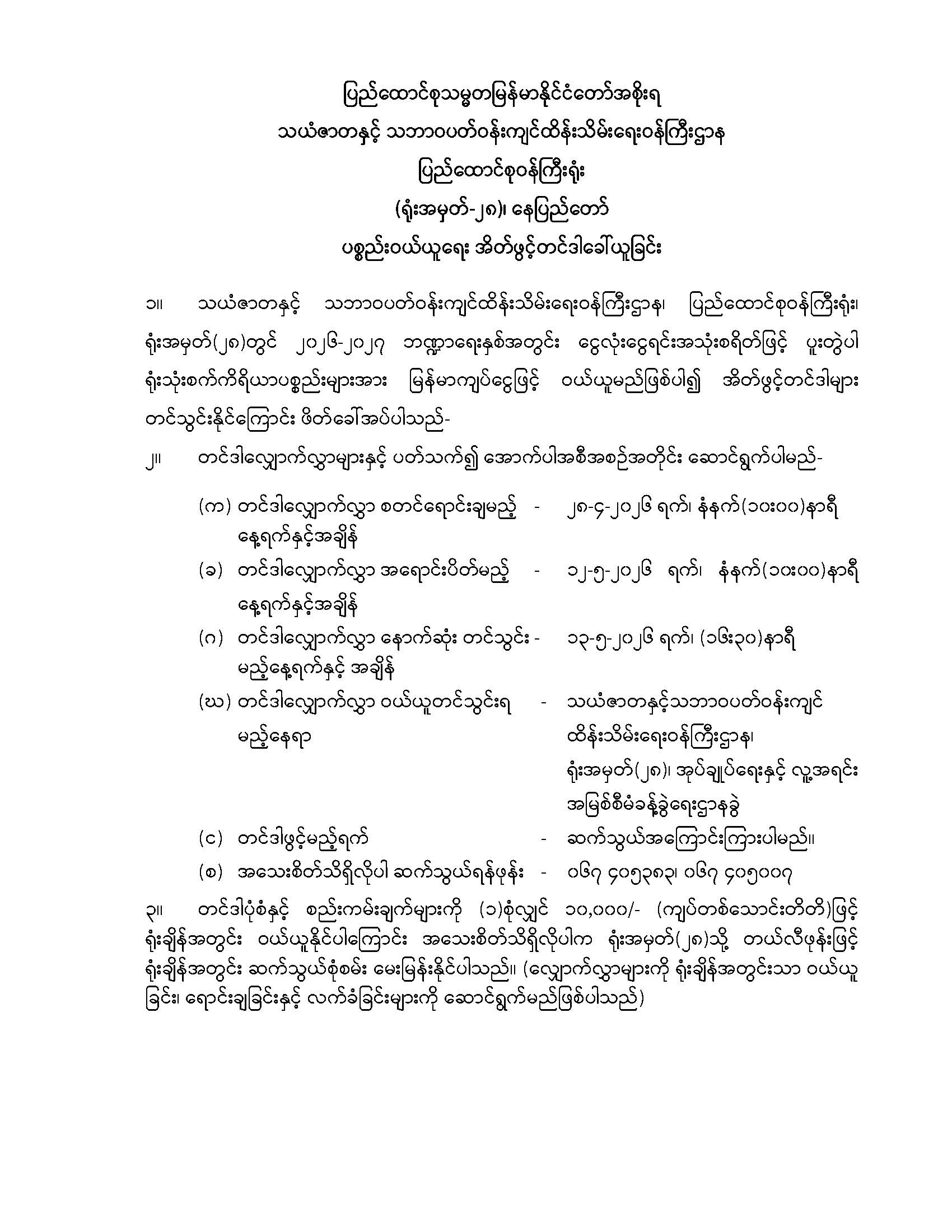 သယံဇာတနှင့် သဘာဝပတ်ဝန်းကျင်ထိန်းသိမ်းရေးဝန်ကြီးဌာန၊ ပြည်ထောင်စုဝန်ကြီးရုံး(ရုံးအမှတ်-၂၈)၊ ပစ္စည်းဝယ်ယူရေး အိတ်ဖွင့်တင်ဒါခေါ်ယူခြင်း