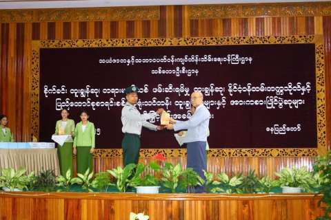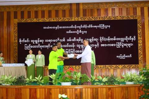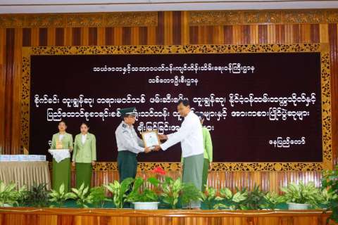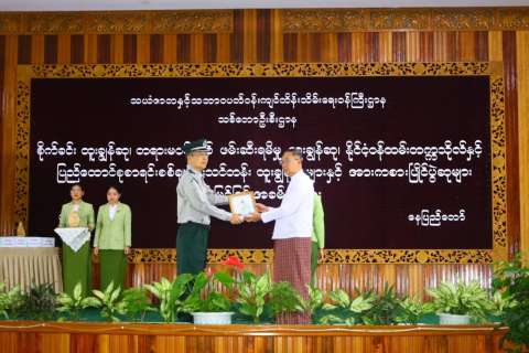သယံဇာတနှင့် သဘာဝပတ်ဝန်းကျင် ထိန်းသိမ်းရေးဝန်ကြီးဌာန၊ သစ်တောဦးစီးဌာန၏ စိုက်ခင်းထူးချွန်ဆု၊ တရားမဝင်သစ်ဖမ်းဆီးမှု ထူးချွန်ဆု၊ နိုင်ငံ့ဝန်ထမ်းတက္ကသိုလ်နှင့် ပြည်ထောင်စု စာရင်းစစ်ချုပ်ရုံးသင်တန်း ထူးချွန်ဆုများနှင့် လွတ်လပ်ရေးနေ့အကြို အားကစားပြိုင်ပွဲဆုများ ပေးအပ် ချီးမြှင့်ခြင်း အခမ်းအနားကို ၃၁-၁၂-၂၀၂၅ ရက်နေ့ နံနက်ပိုင်းတွင် နေပြည်တော်ရှိ၊ သစ်တောဦးစီးဌာန၊ အင်ကြင်းခန်းမ၌ ကျင်းပရာ ပြည်ထောင်စုဝန်ကြီး ဦးခင်မောင်ရီ၊ ဒုတိယဝန်ကြီး ဦးမင်းသူ၊ အမြဲတမ်းအတွင်းဝန်နှင့် ဌာနဆိုင်ရာတာဝန်ရှိသူများနှင့် ဝန်ထမ်းများ တက်ရောက် ကြသည်။